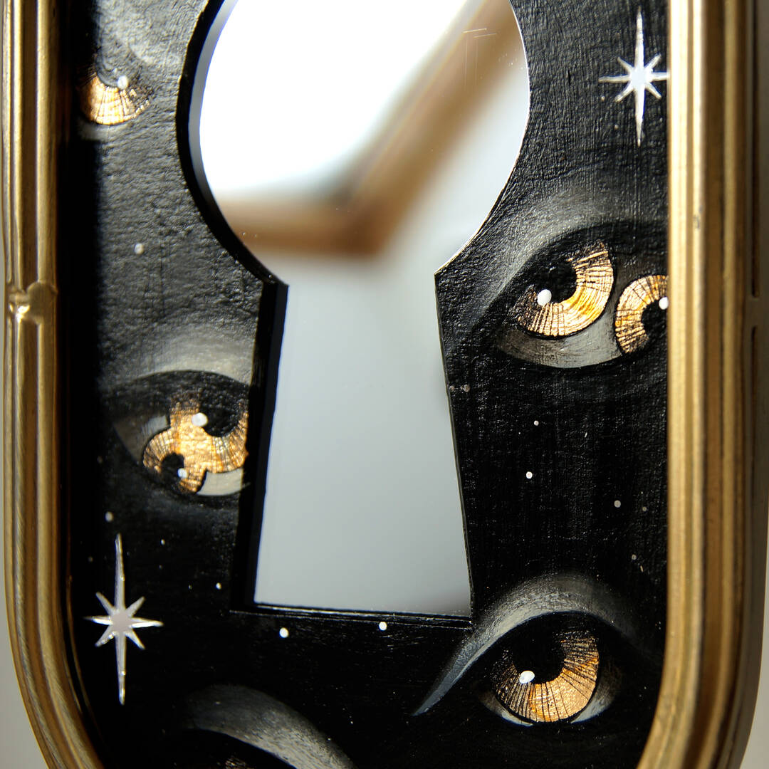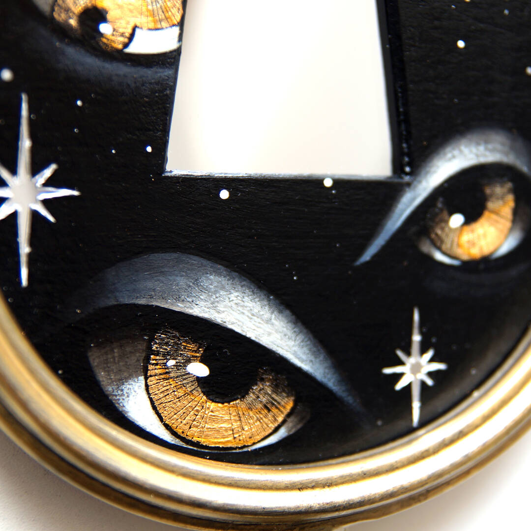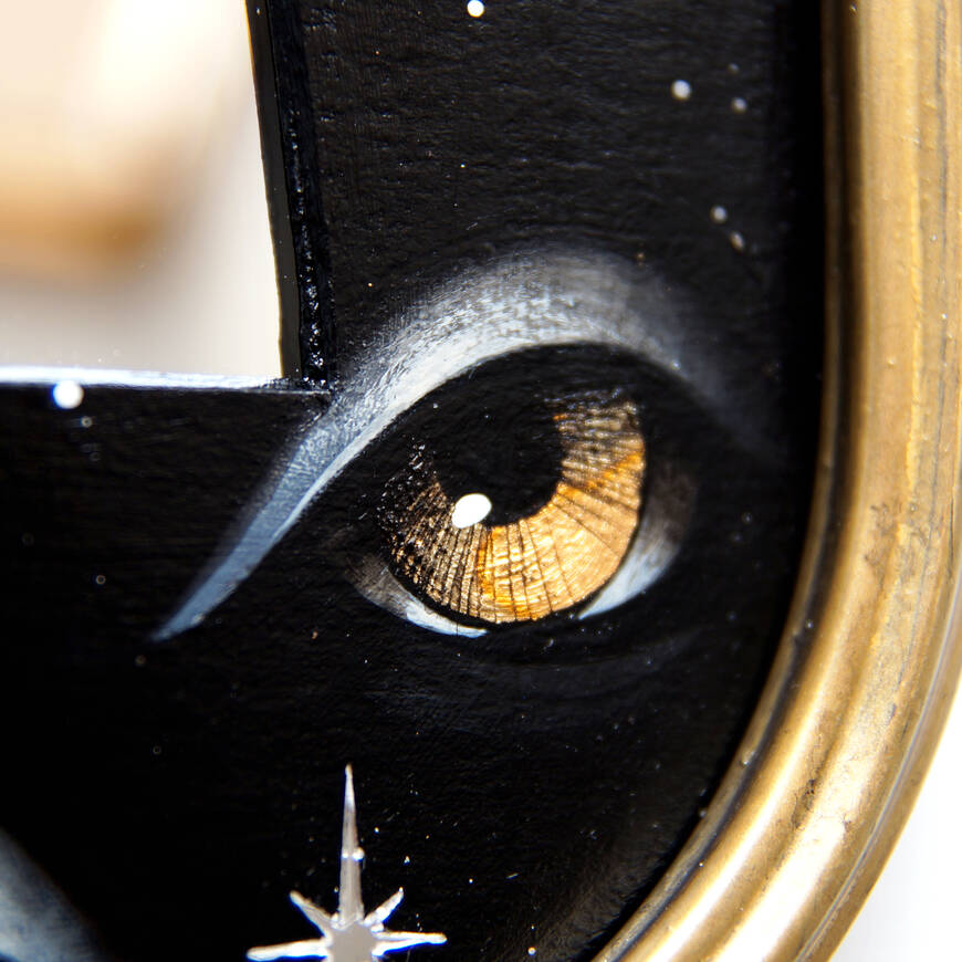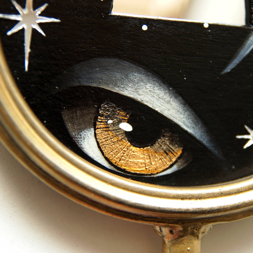 Вставка с картиной из картона, акрил, поталь, зеркальные звезды.