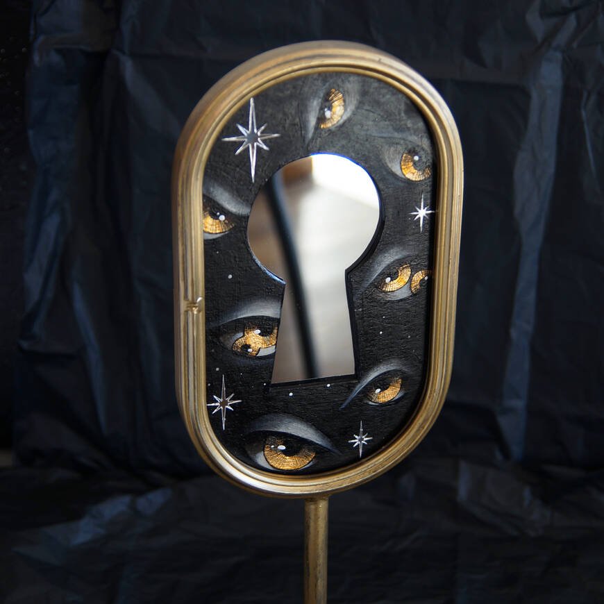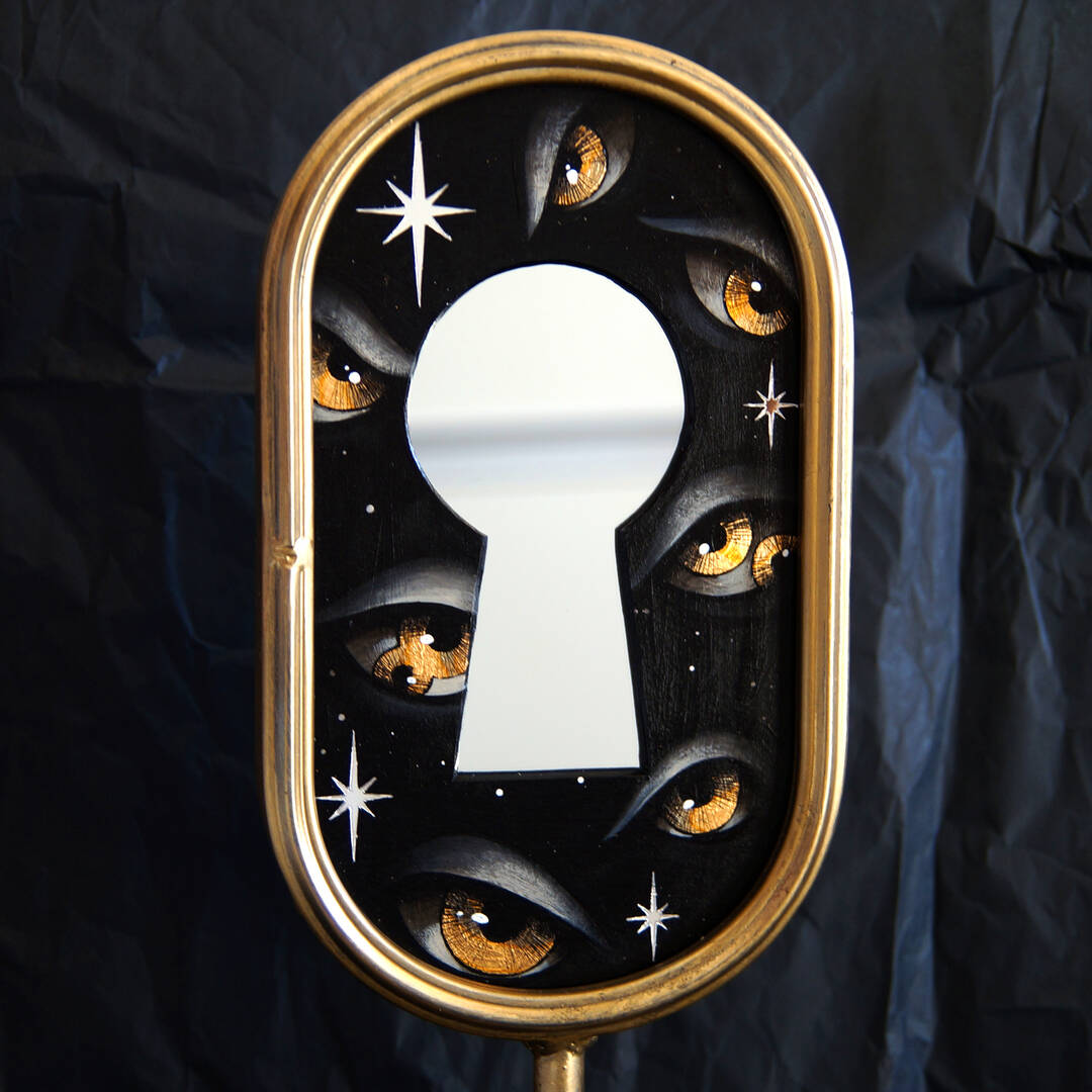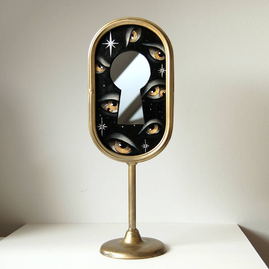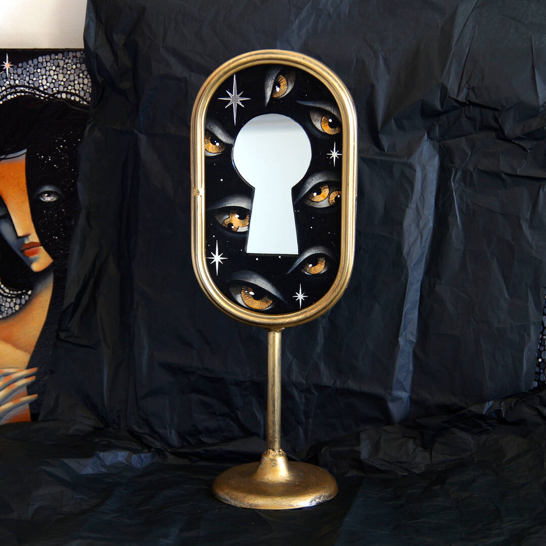 Вставка с картиной из картона, акрил, поталь, зеркальные звезды.