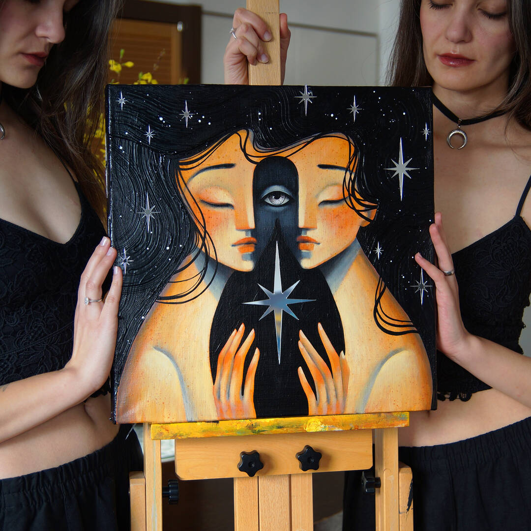 40х40х4 см. Холст, акрил, поталь, зеркало 2026